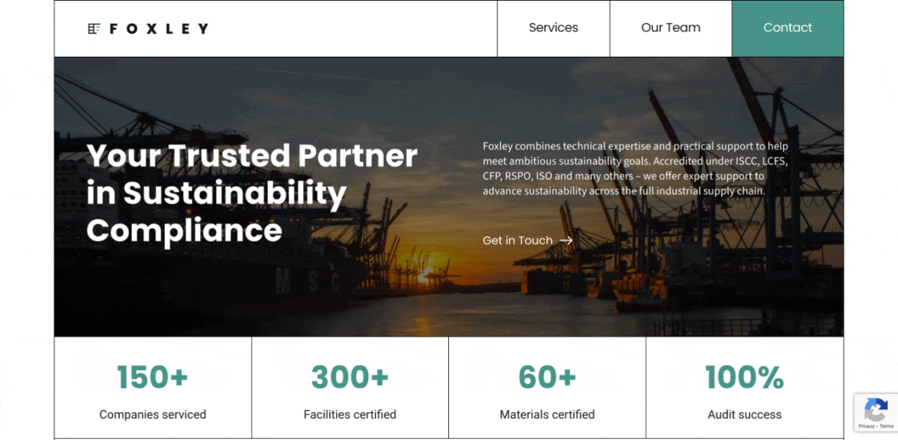 A corporate site supporting sustainability consulting and auditing across complex industrial supply chains.
